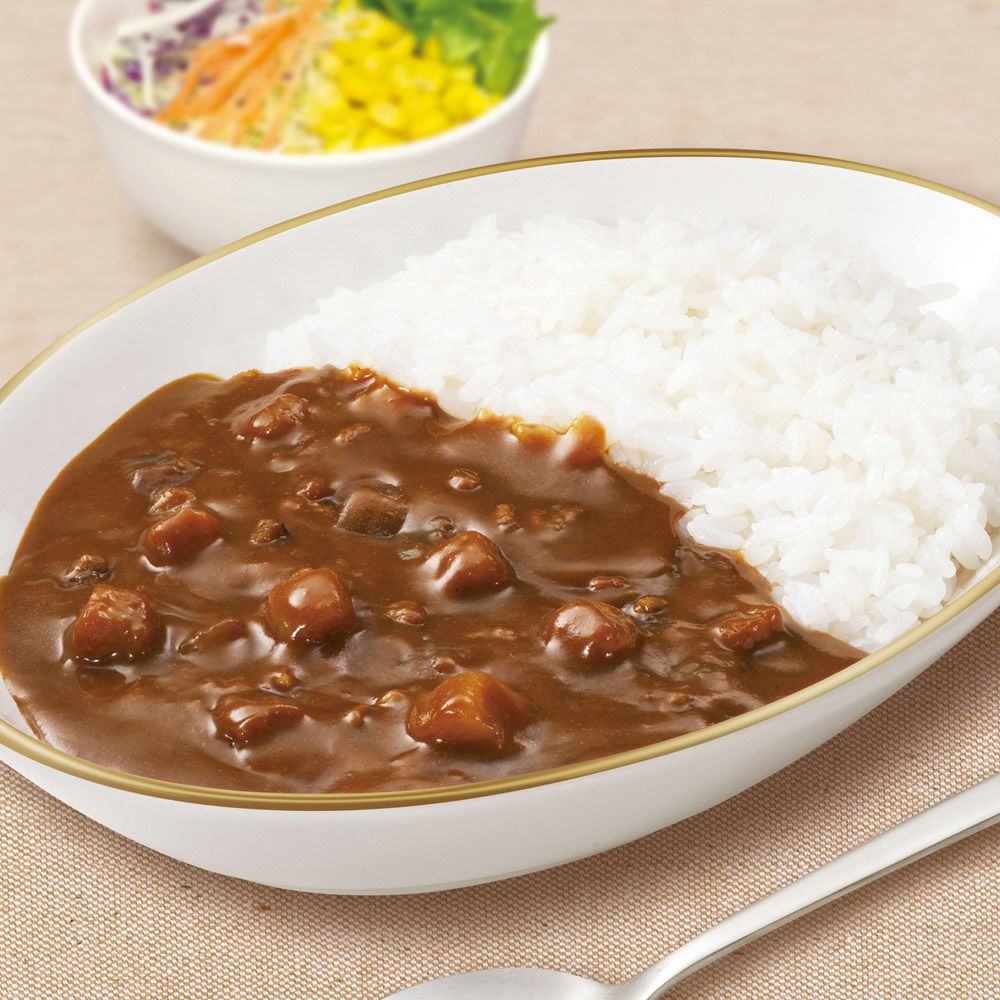 角切り野菜、牛挽肉を4種のきのこのソースと赤ワインでじっくり煮込んで仕上げた、こだわりの甘口タイプのビーフカレーです。 りんごとバナナ、練乳のまろやかな甘さを加えました。