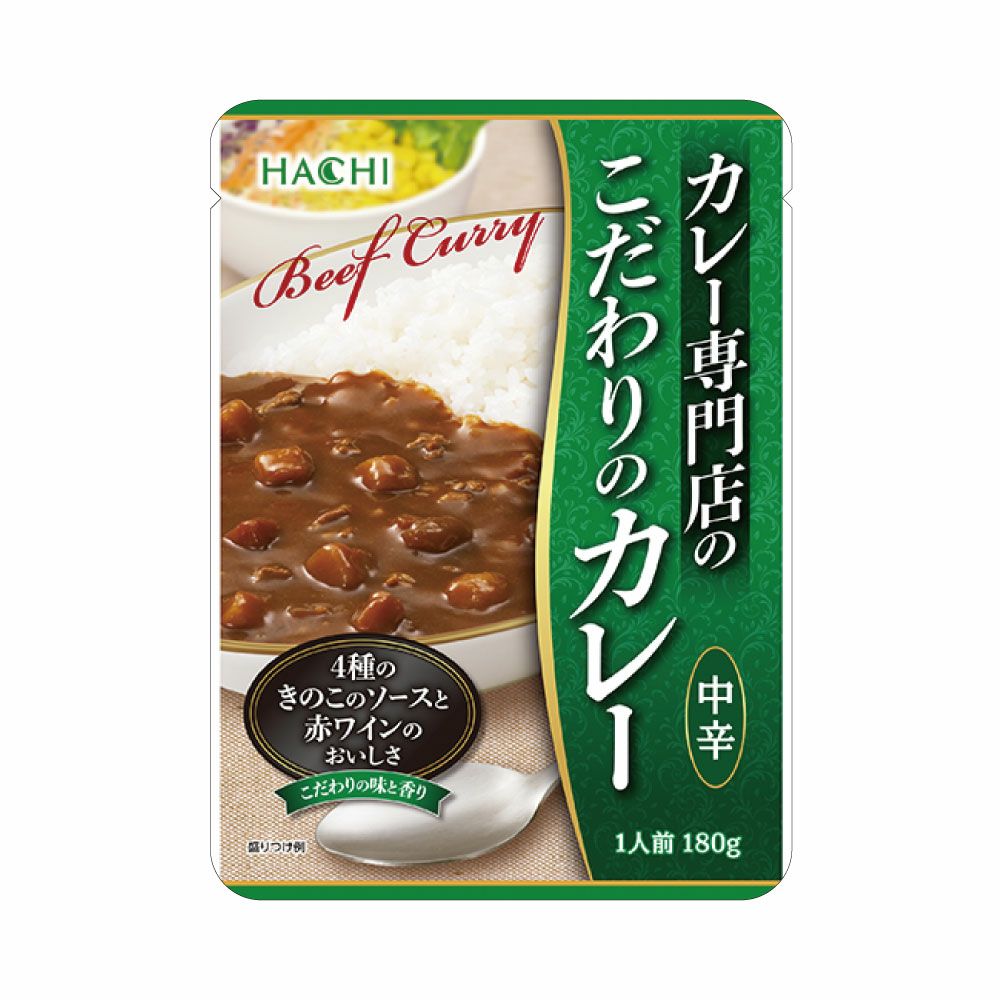 20種類以上のスパイスをブレンドしたカレー粉を使い、角切り野菜、牛挽肉を4種のきのこのソースと赤ワインでじっくり煮込んで仕上げた、こだわりの中辛タイプのビーフカレーです。