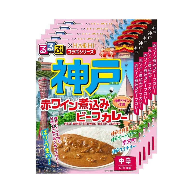 【るるぶ×HACHIコラボ】神戸 赤ワイン煮込みビーフカレー 中辛/レトルトカレー 1人前 180g