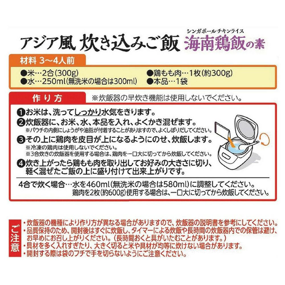 【ワールドディッシュ】アジア風炊き込みご飯 海南鶏飯の素/3~4人前 120g